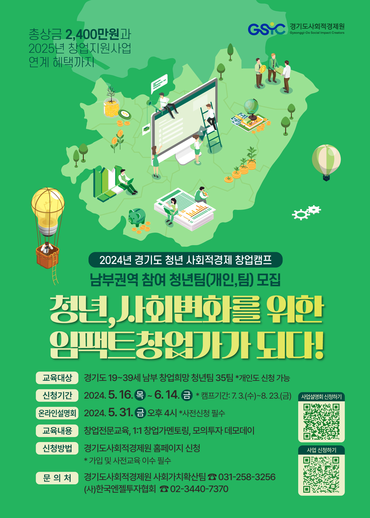 사회문제를 비즈니스로 해결하는 창업교육과정 「2024년 경기도 청년 사회적경제 창업캠프(남부)」를 개최하고자 합니다.