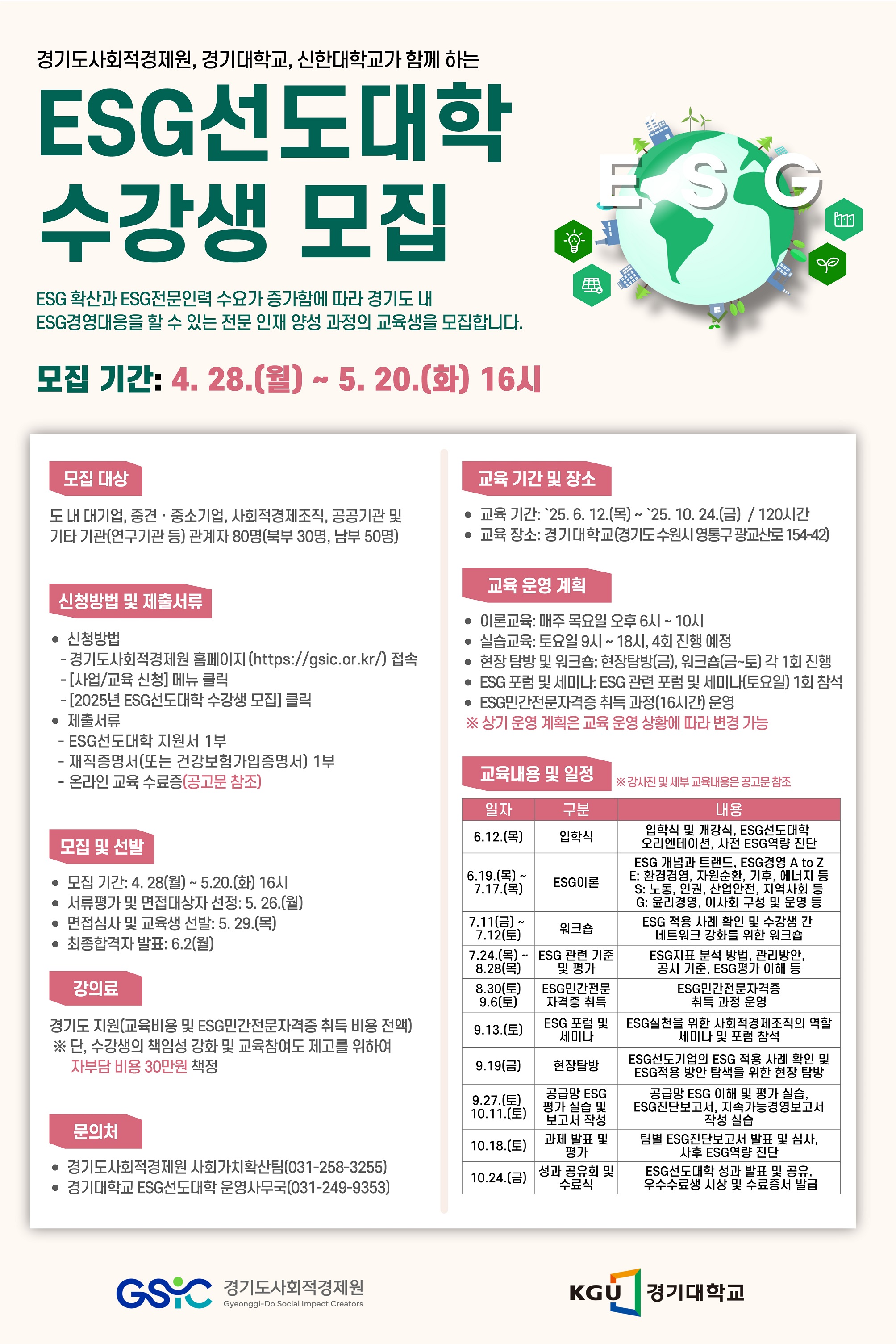 [공고] [경기도사회적경제원] 2025년 ESG선도대학(북/남부) 수강생 모집