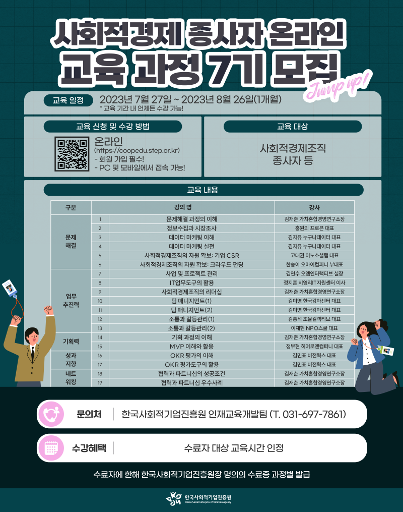 ★ 사회적경제 종사자 역량강화 온라인 교육 과정 7기를 모집합니다! 많은 관심과 참여 부탁드립니다!